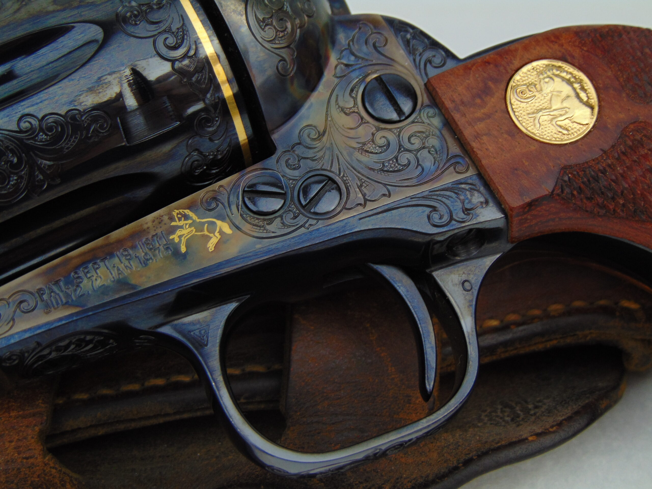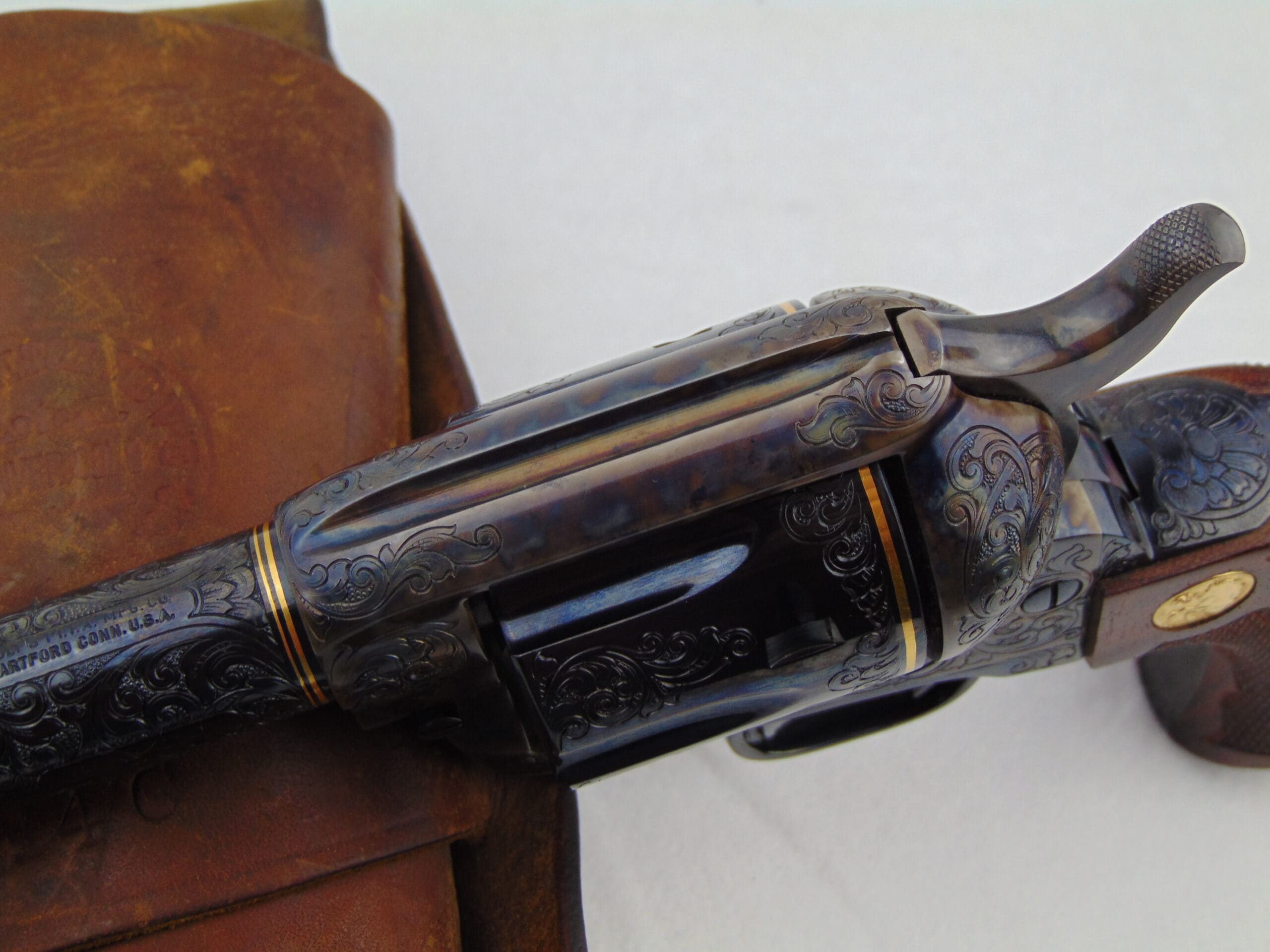 Burt’s career at Colt began in the early 1970’s and he continued to produce his art through the 1990’s with Colt and also independently. This revolver includes a Colt Archive Letter confirming all specifications done through Colt.