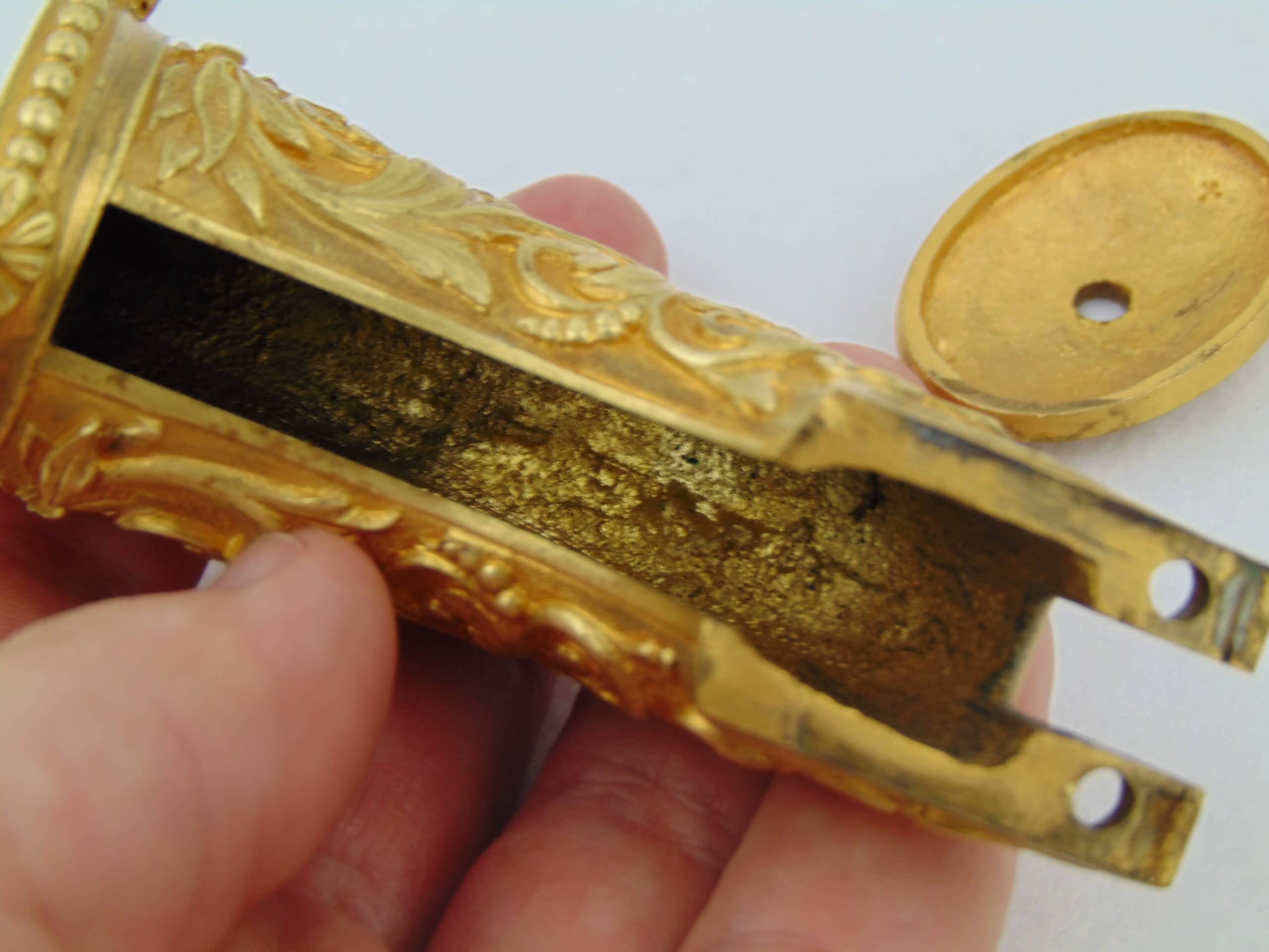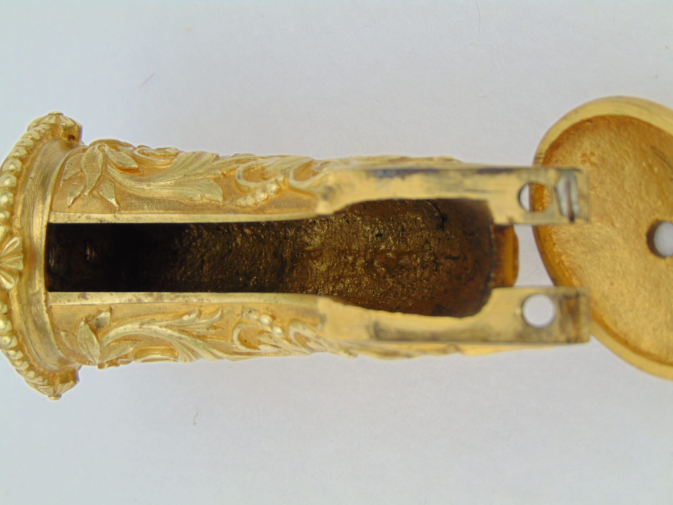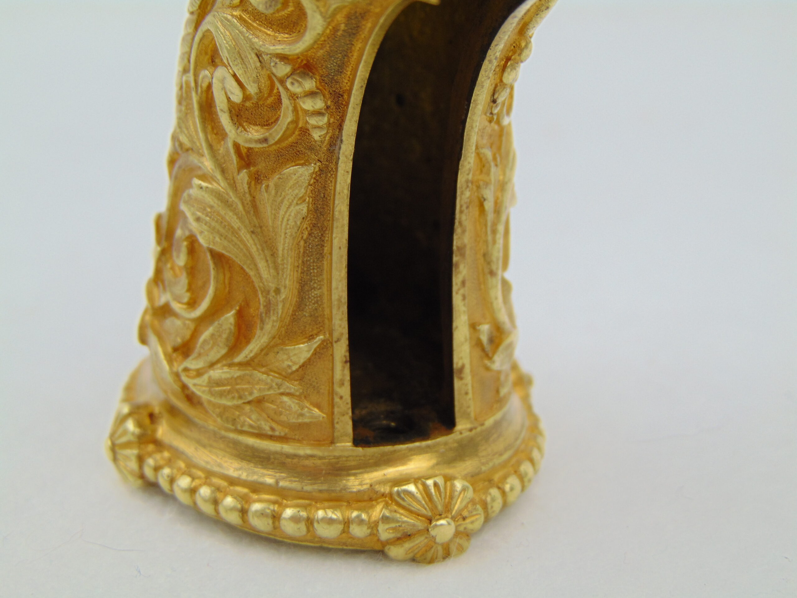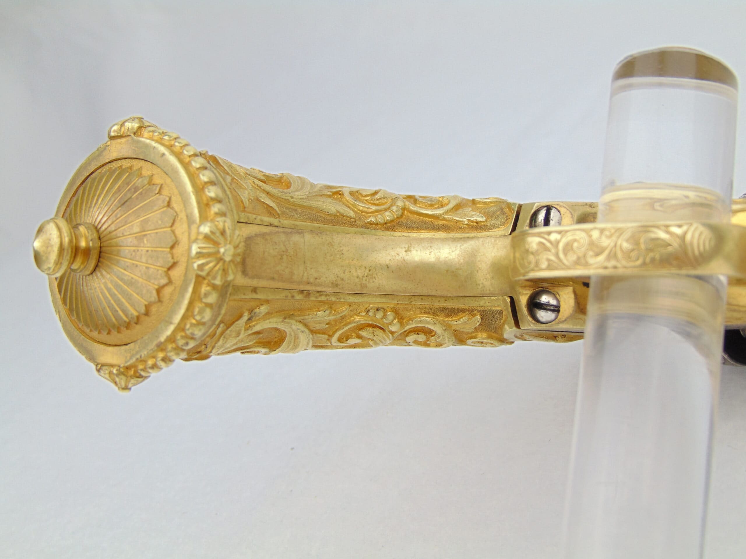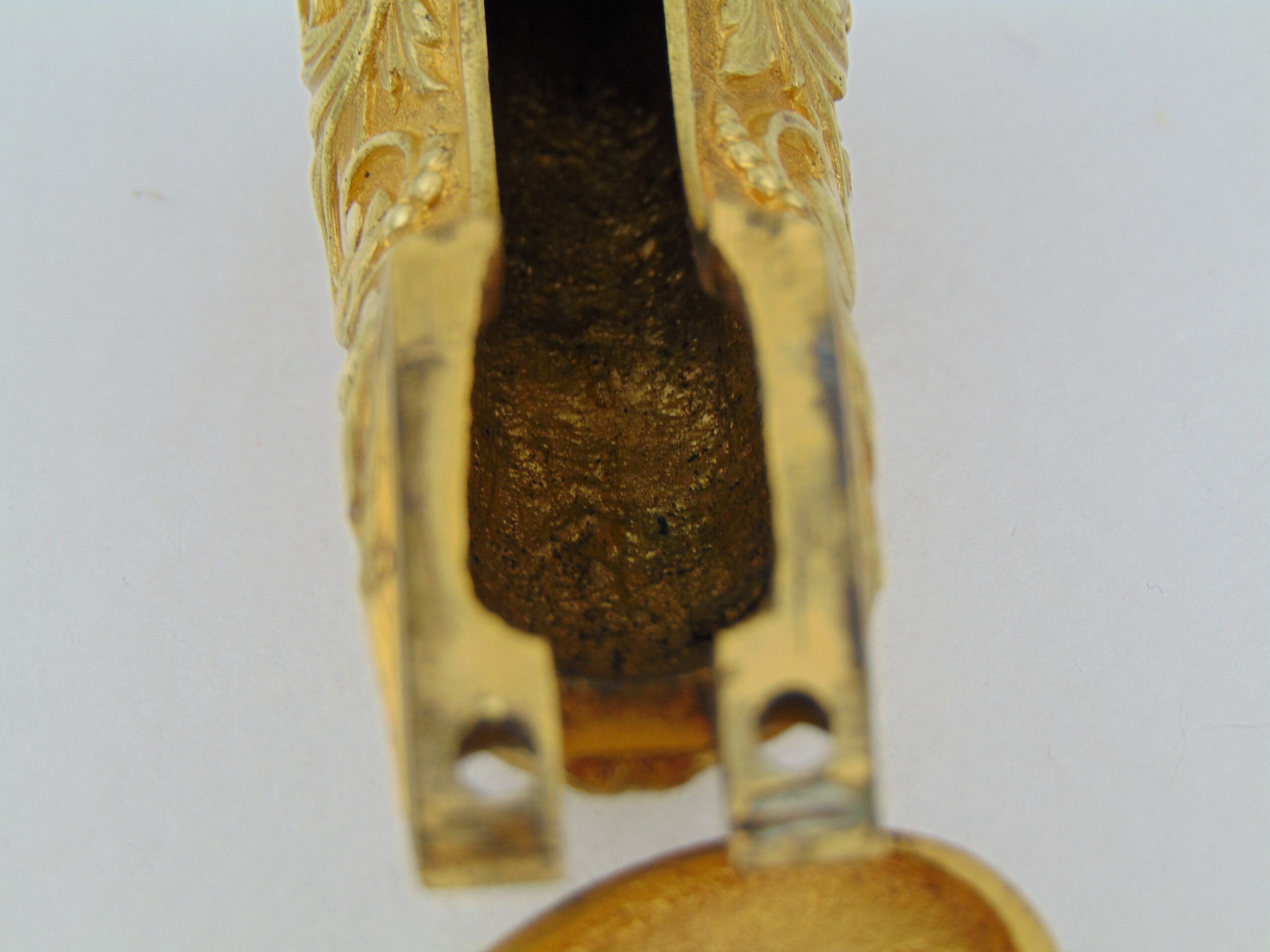 This Colt is fitted with a pair of cast bronze, gold plated, Tiffany eagle grips. These grips, according to R.L. Wilson evaluation, are genuine Tiffany – recent consult on these grips has been inconclusive. We encourage any serious potential buyers to carefully review the photos of these grips, and to ask us for any more information about them to make an informed decision on their authenticity.