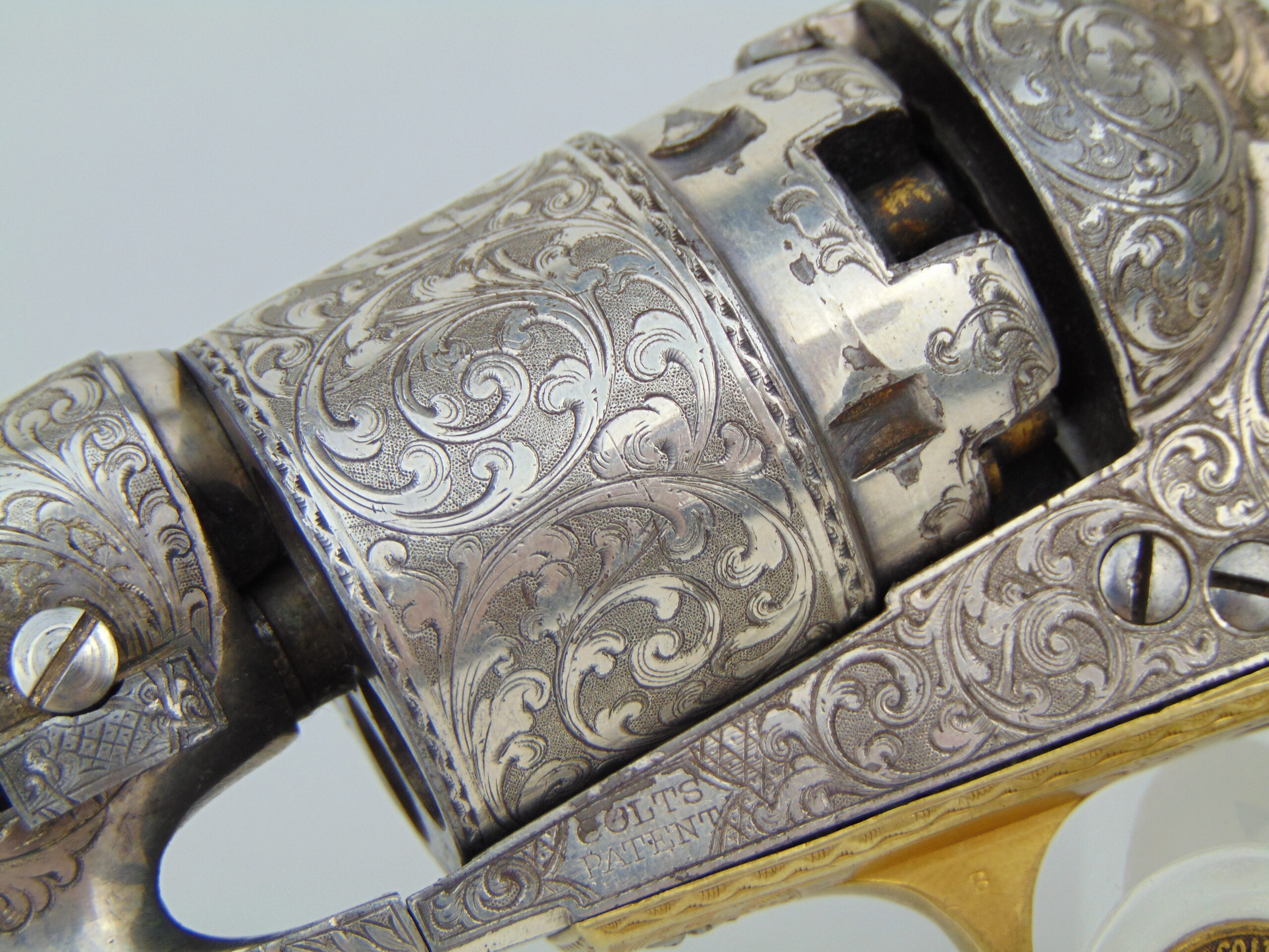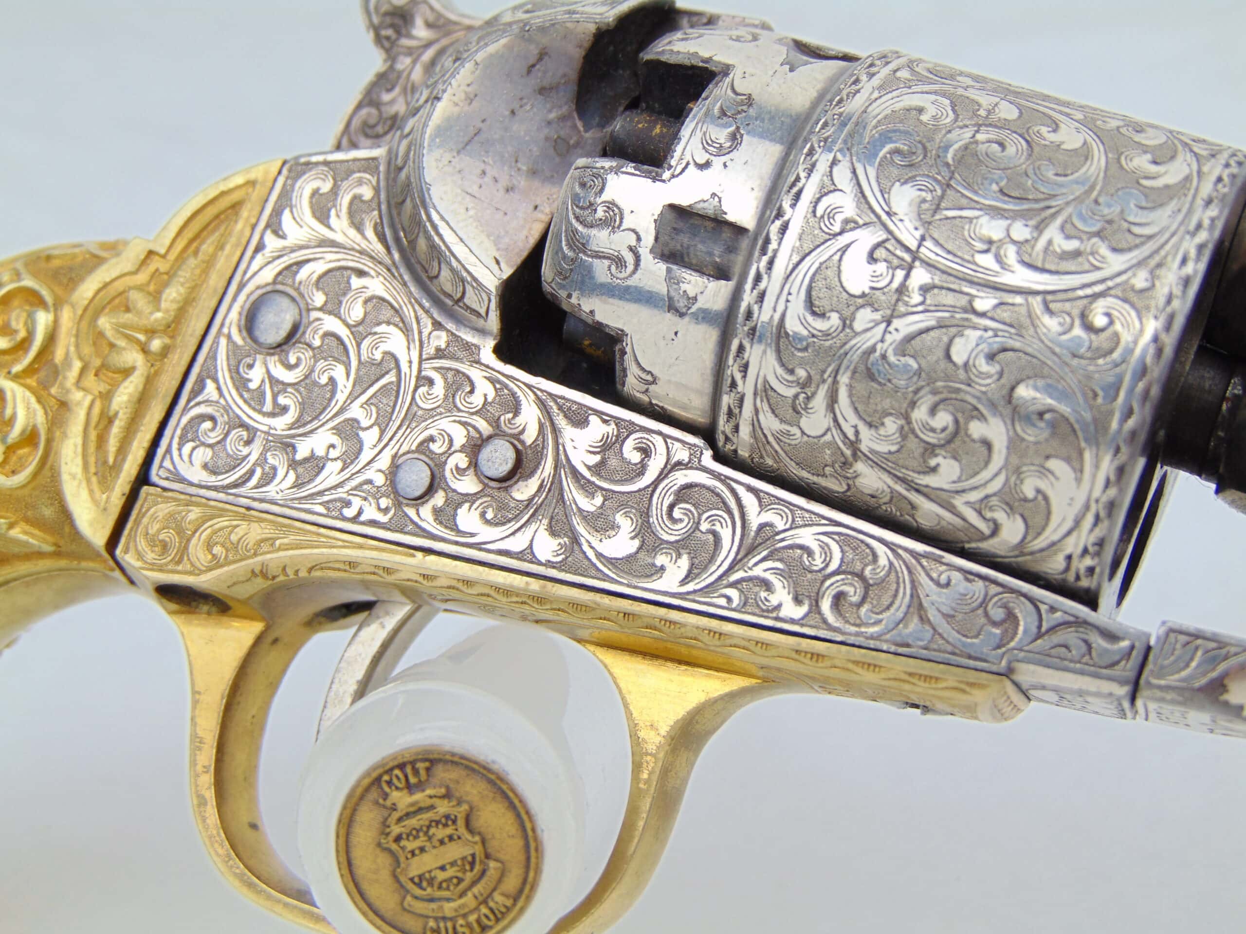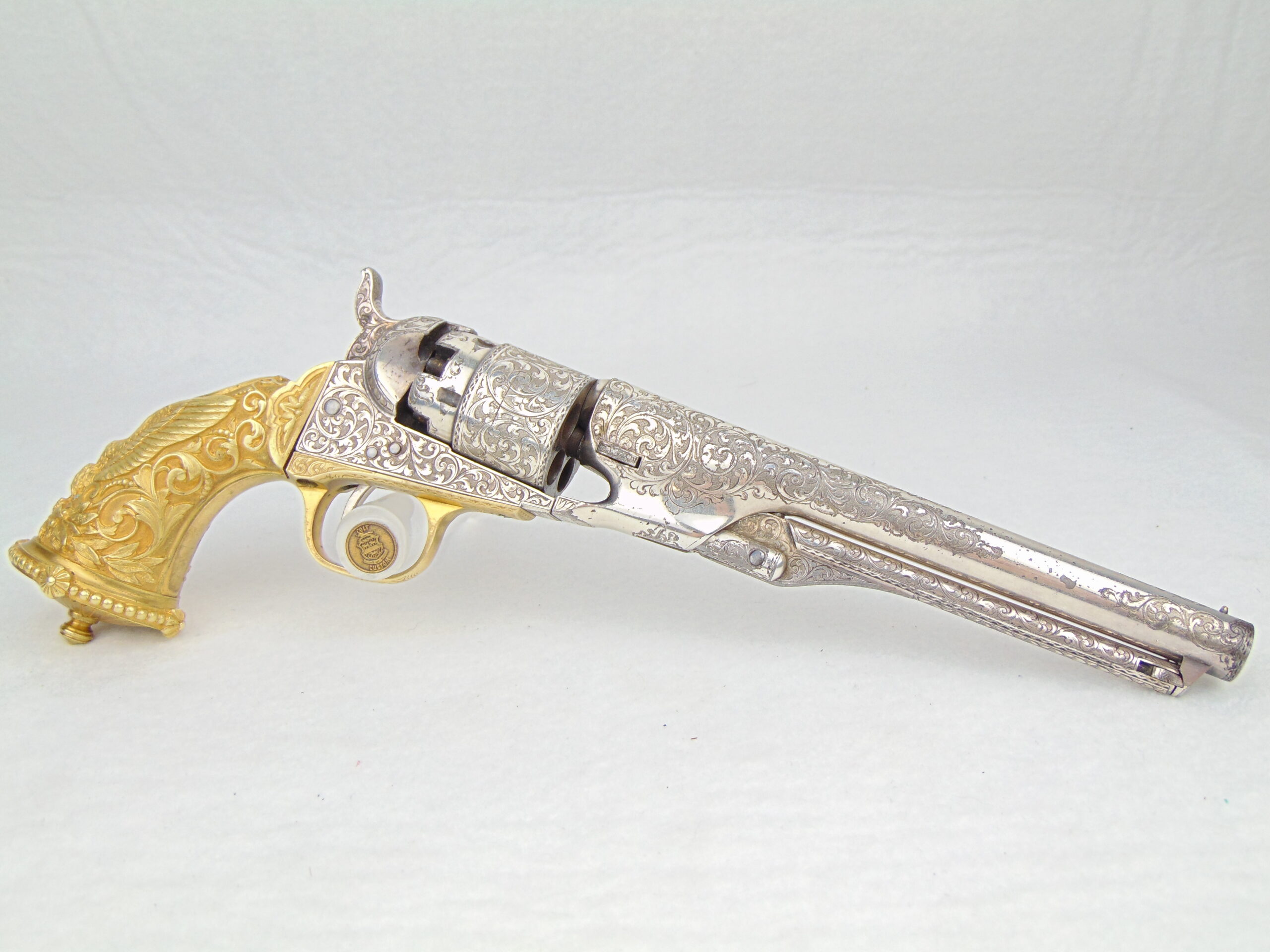 Overall, a tremendous example of mid-19th century firearm embellishment, in well preserved condition. A worthy centerpiece of any Colt collection.