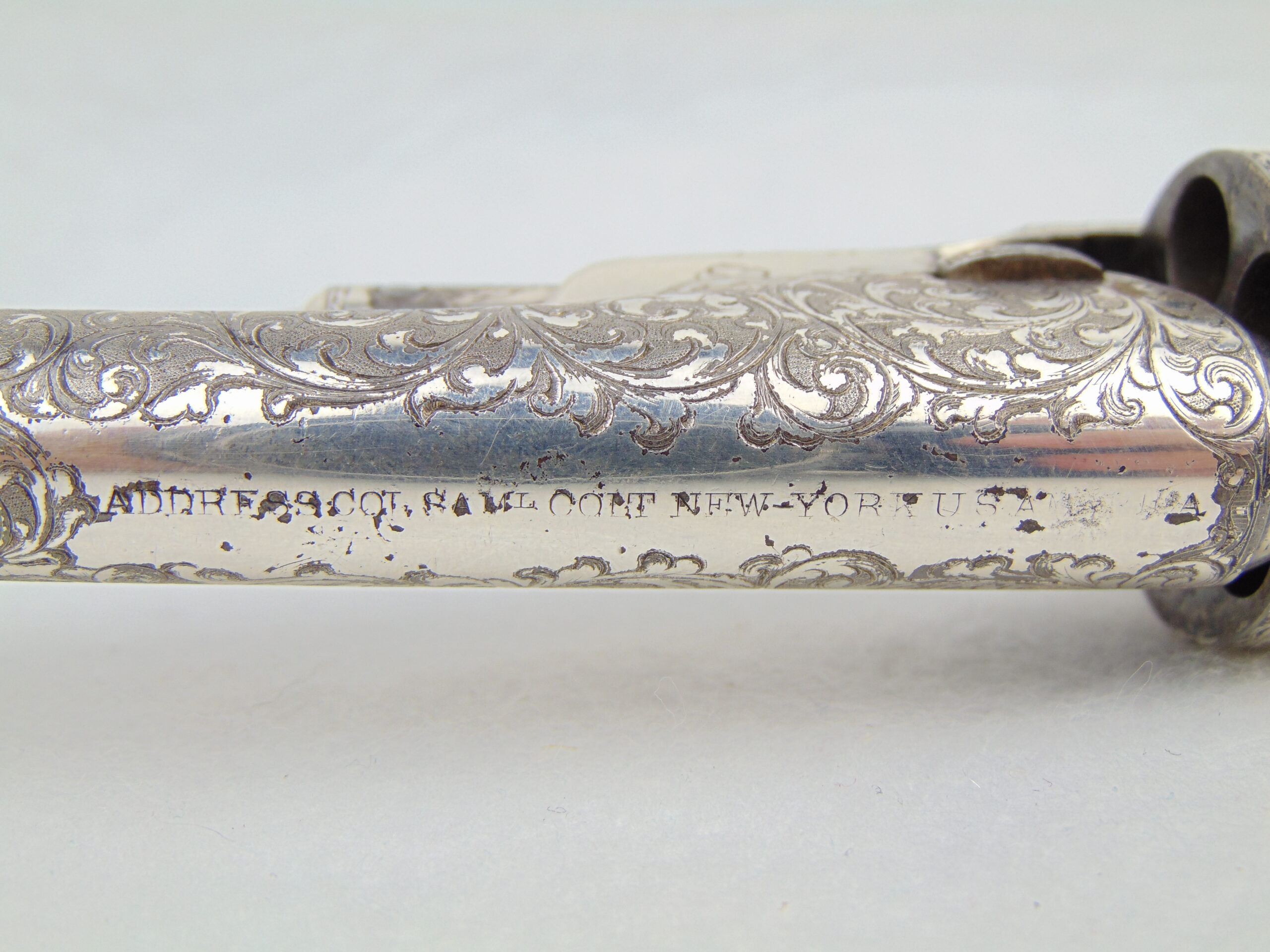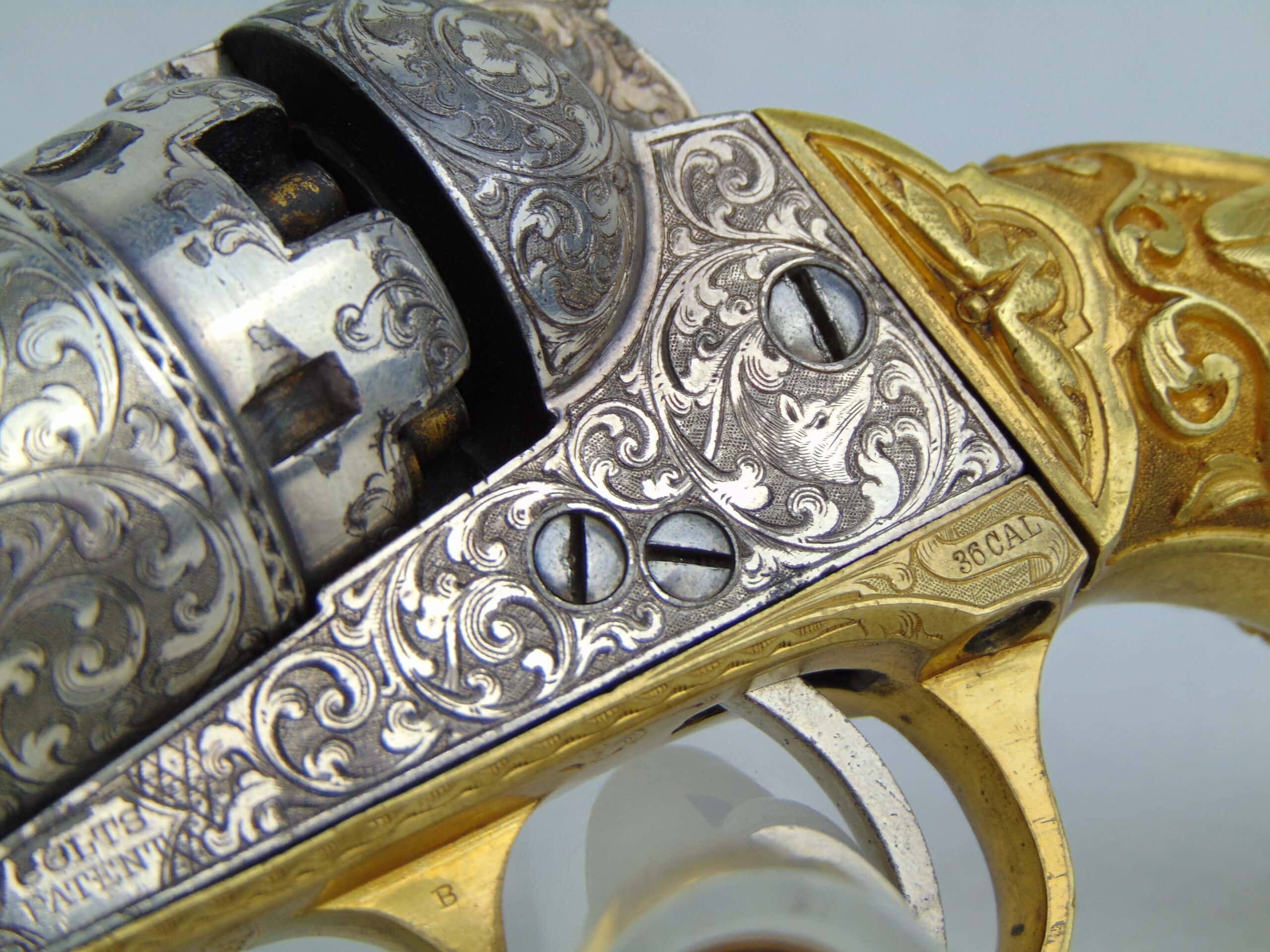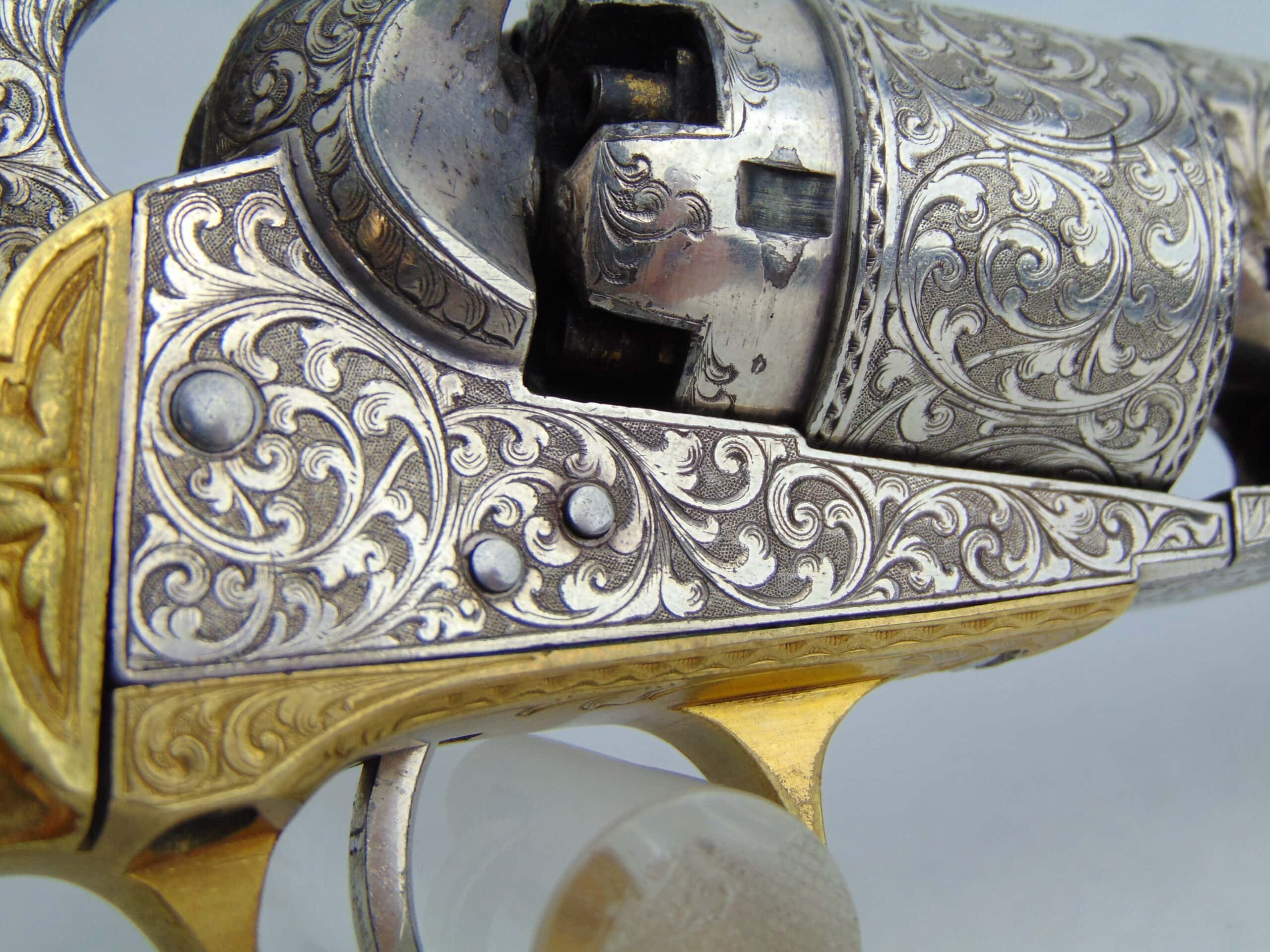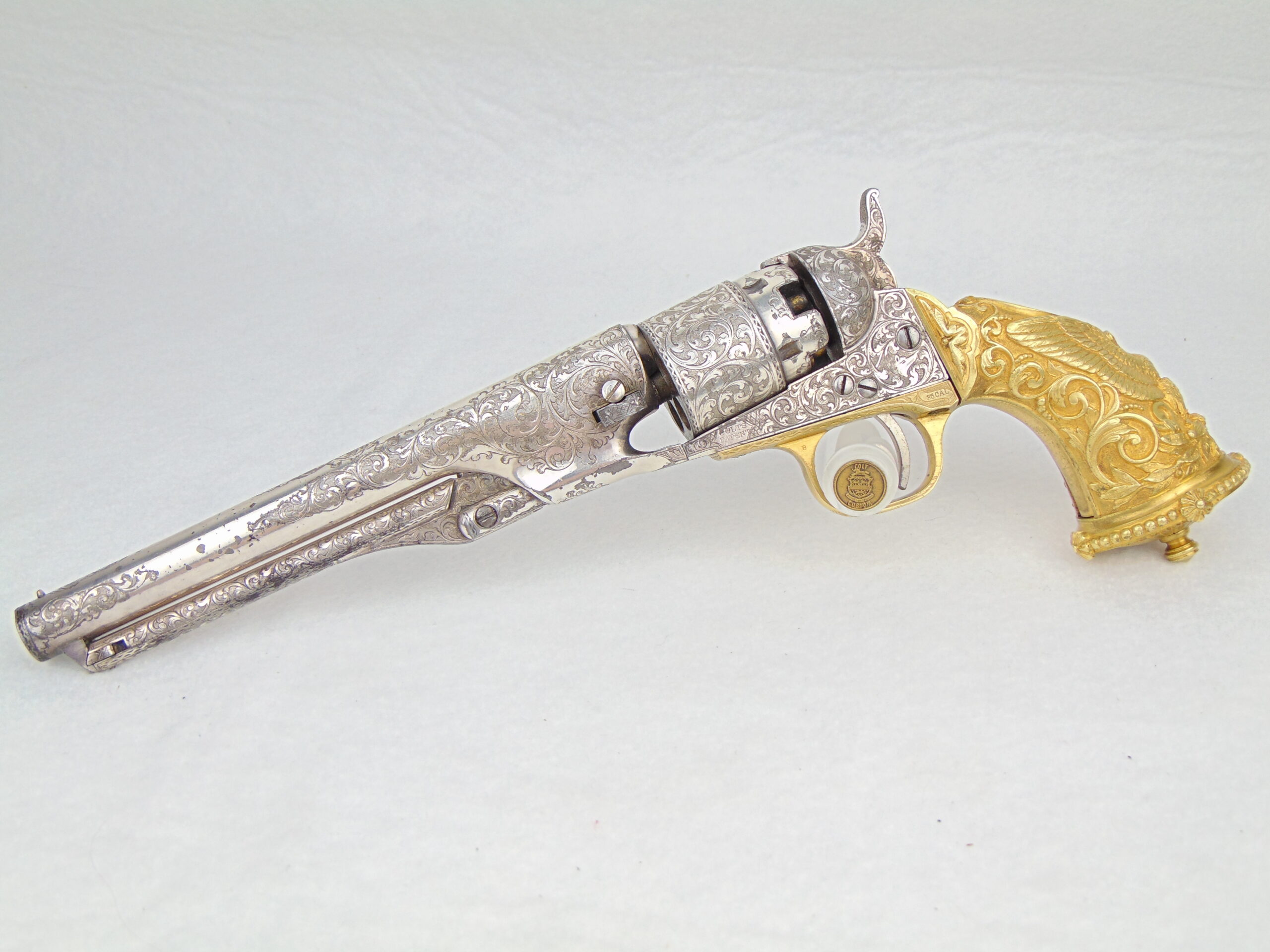 Overall, a tremendous example of mid-19th century firearm embellishment, in well preserved condition. A worthy centerpiece of any Colt collection.