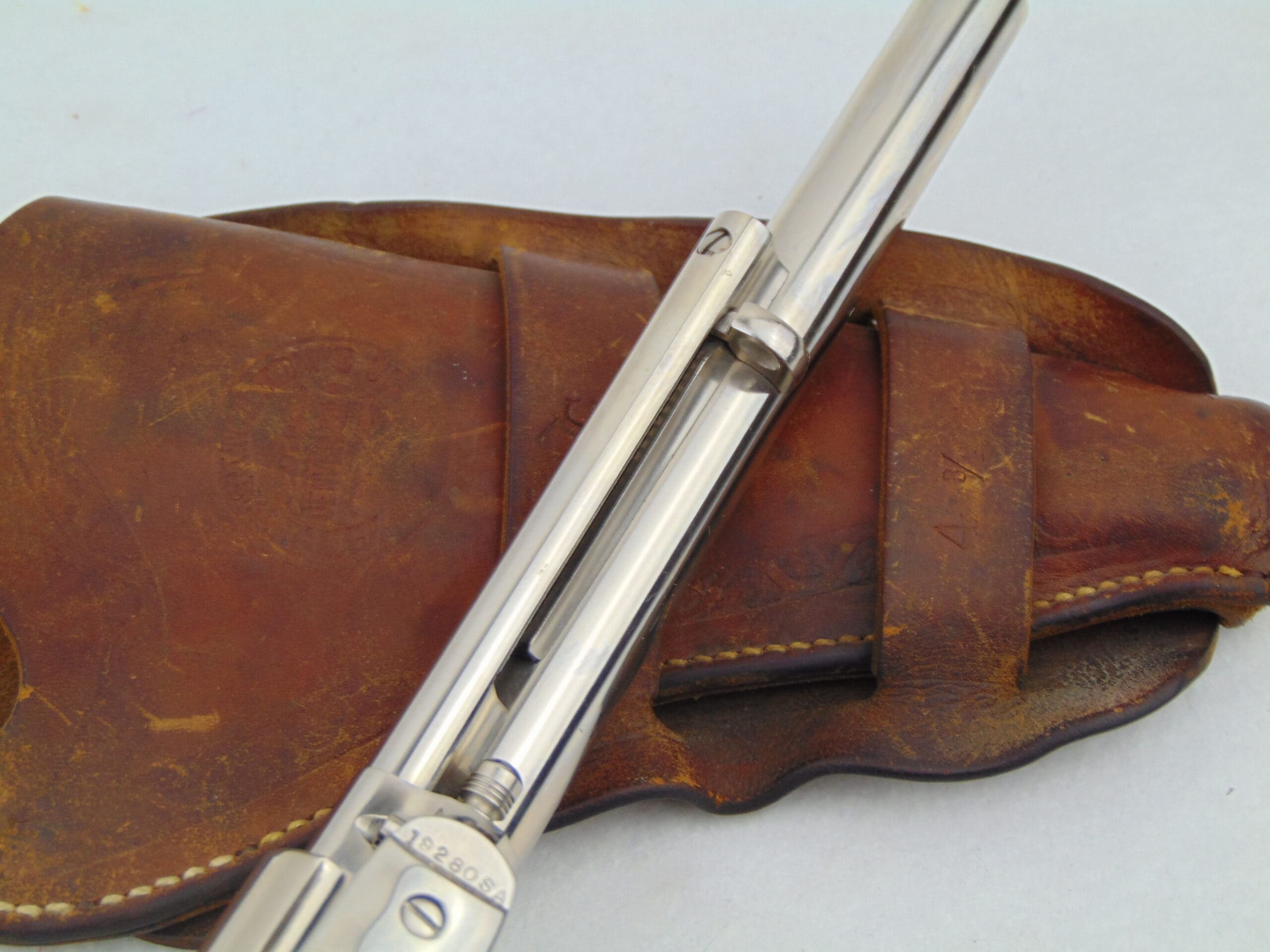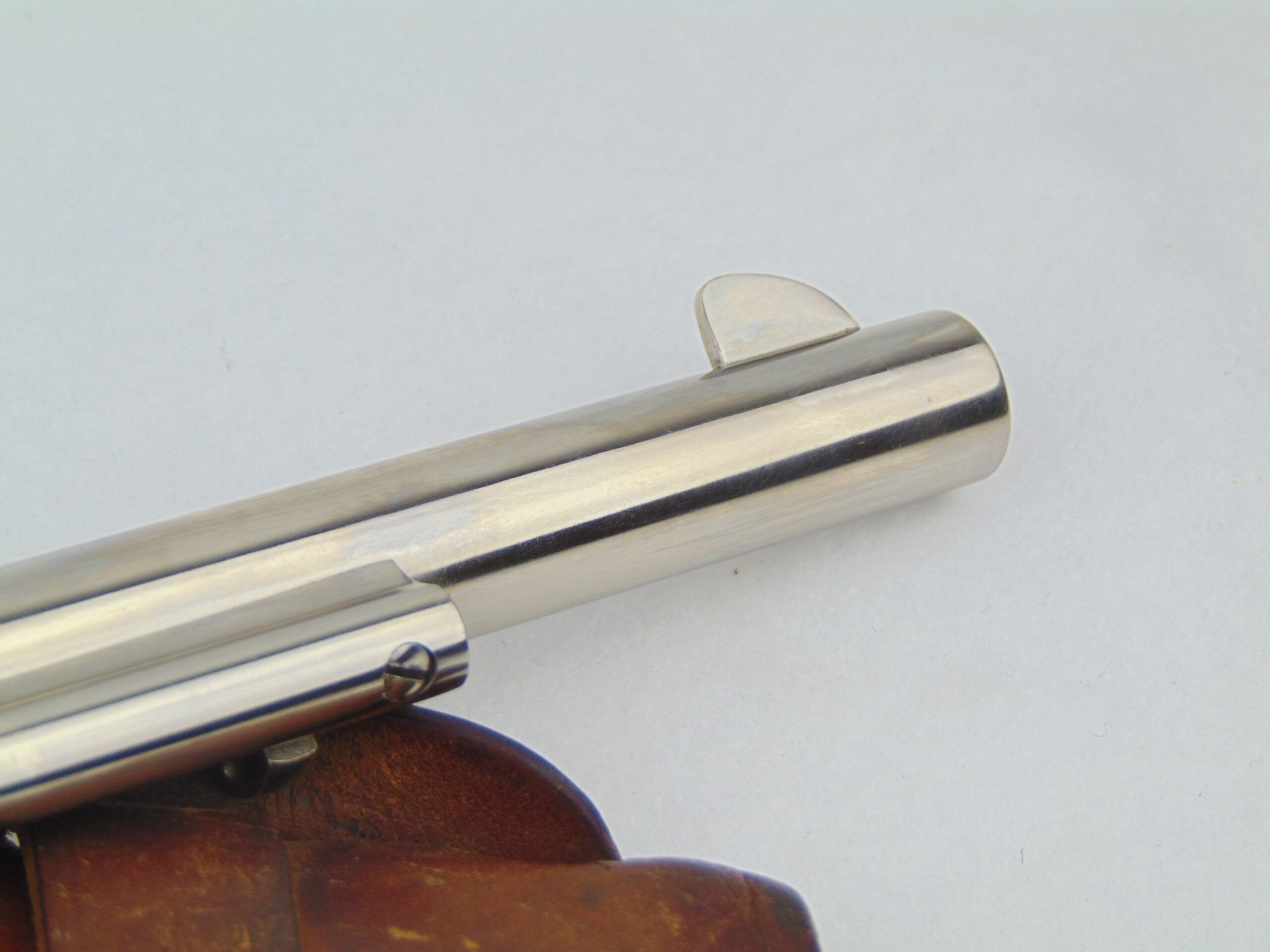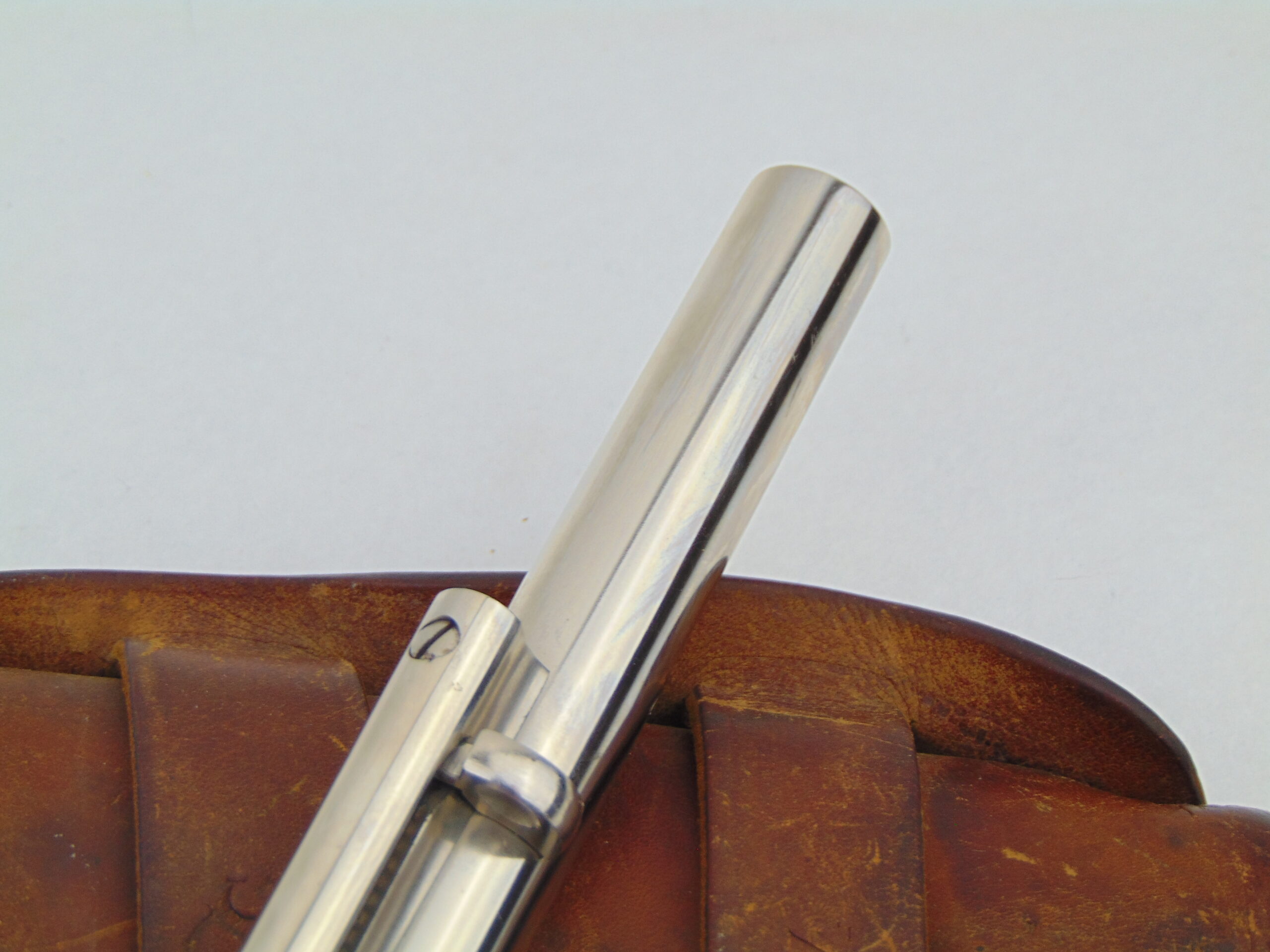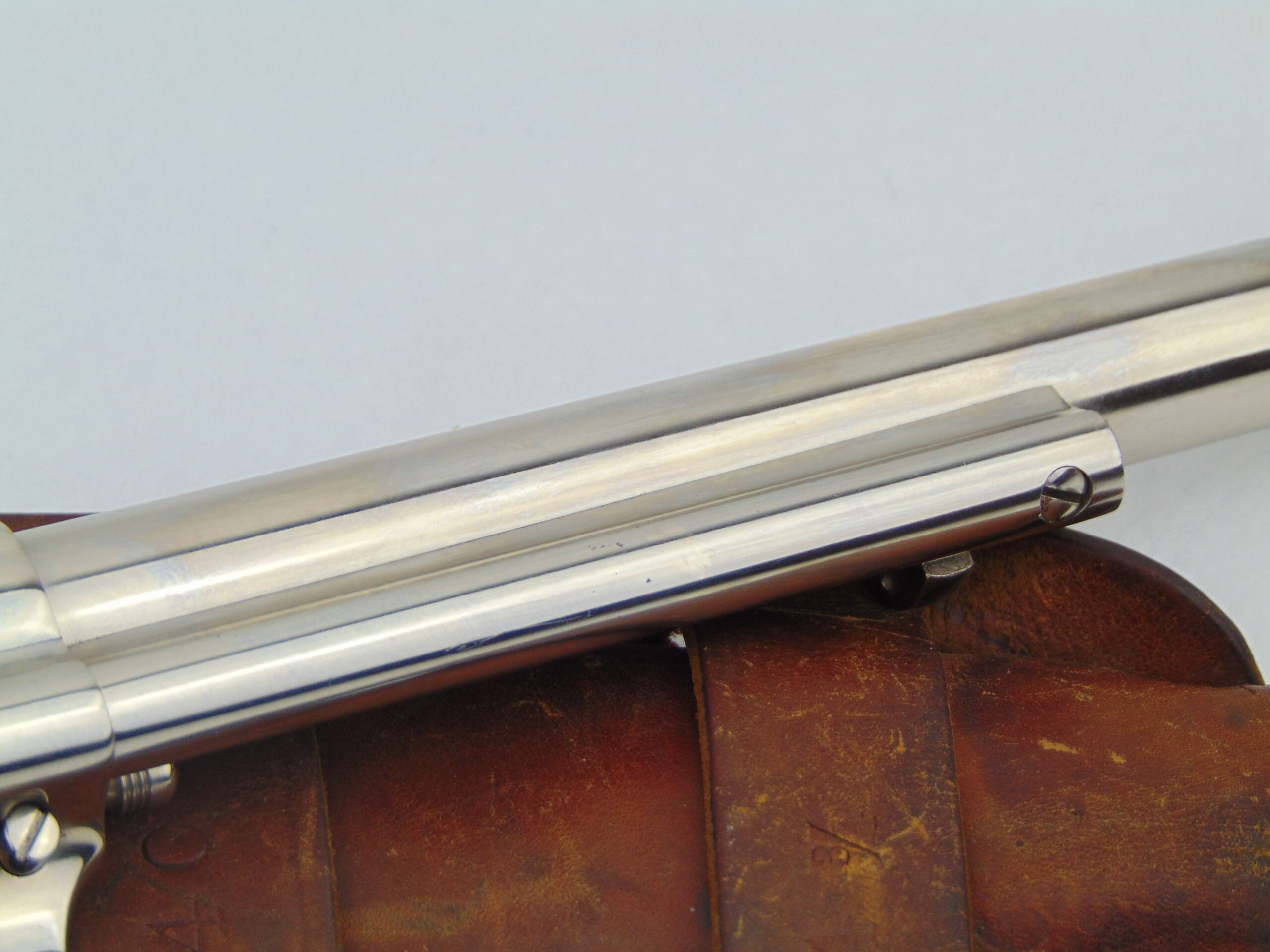 Revolver exhibits a high percentage of its original nickel finish, with some fine scratches and some minimal finish loss on the backstrap near the presentation inscription. Revolver is mechanically sound. Butt of gun contains small import mark.